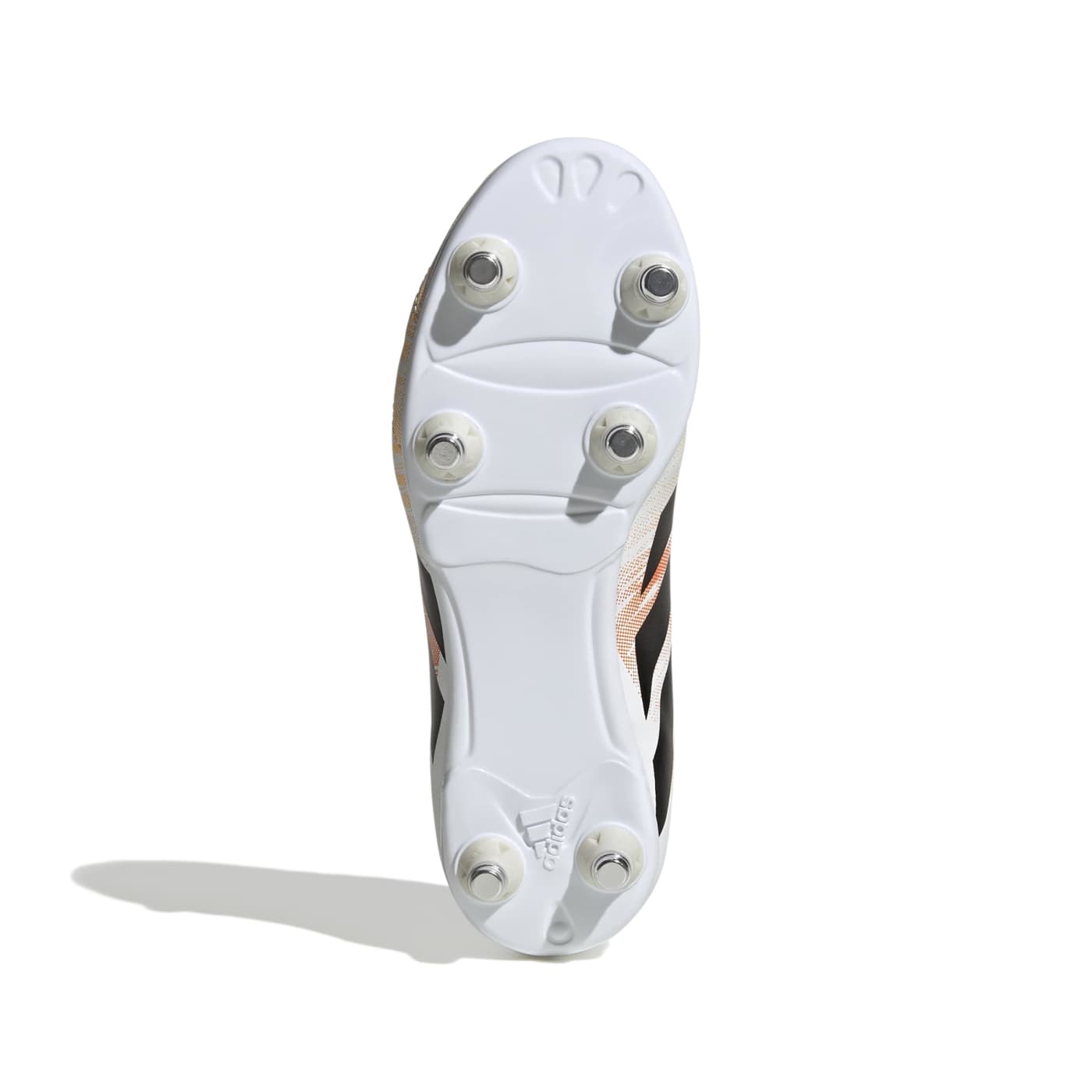 La semelle extérieure est optimisée pour les terrains gras, avec une configuration de crampons vissés conçue pour maximiser l’accroche, la poussée et la stabilité lors des mêlées, courses et changements d’appuis. Les crampons sont amovibles, permettant un entretien facile et une adaptation aux besoins spécifiques.