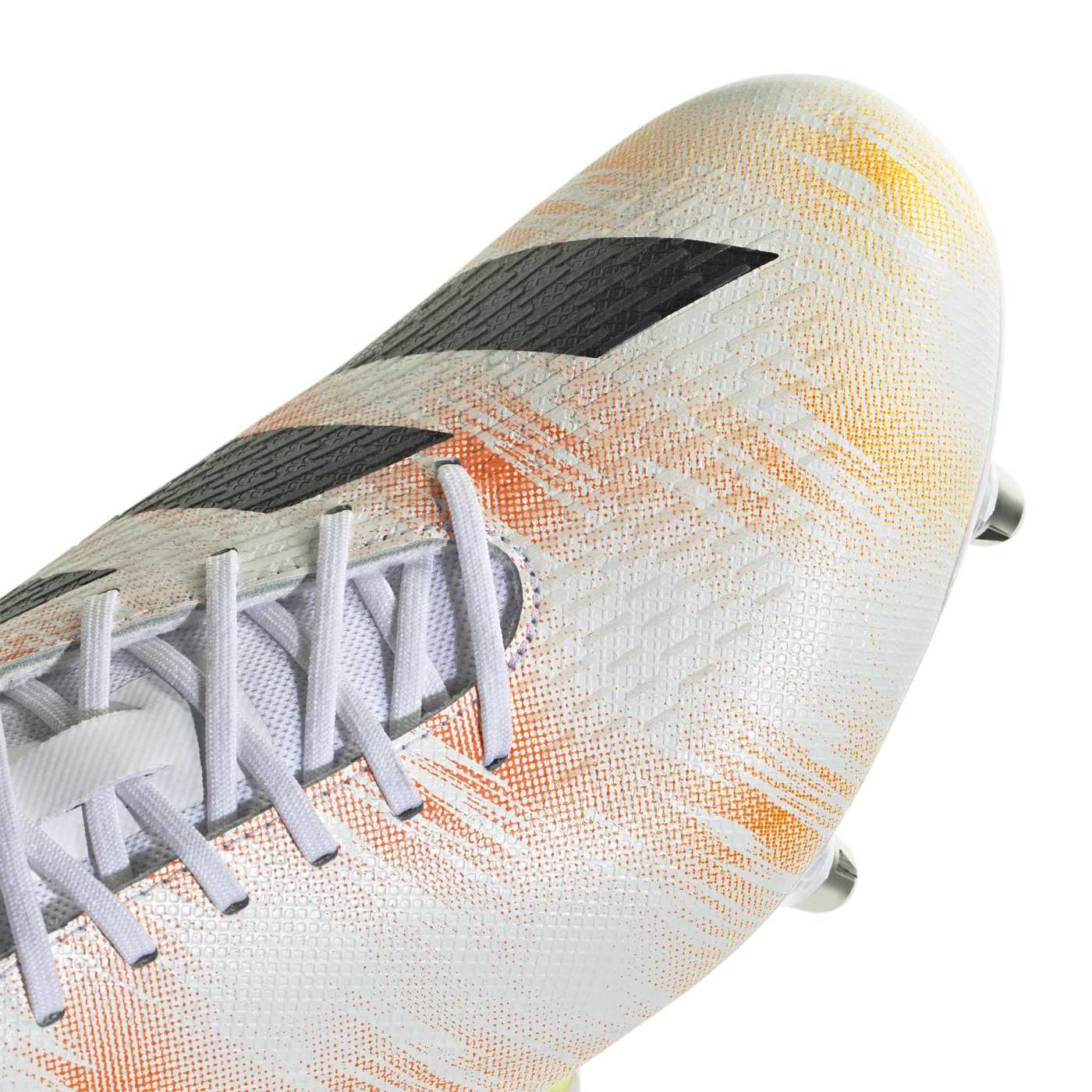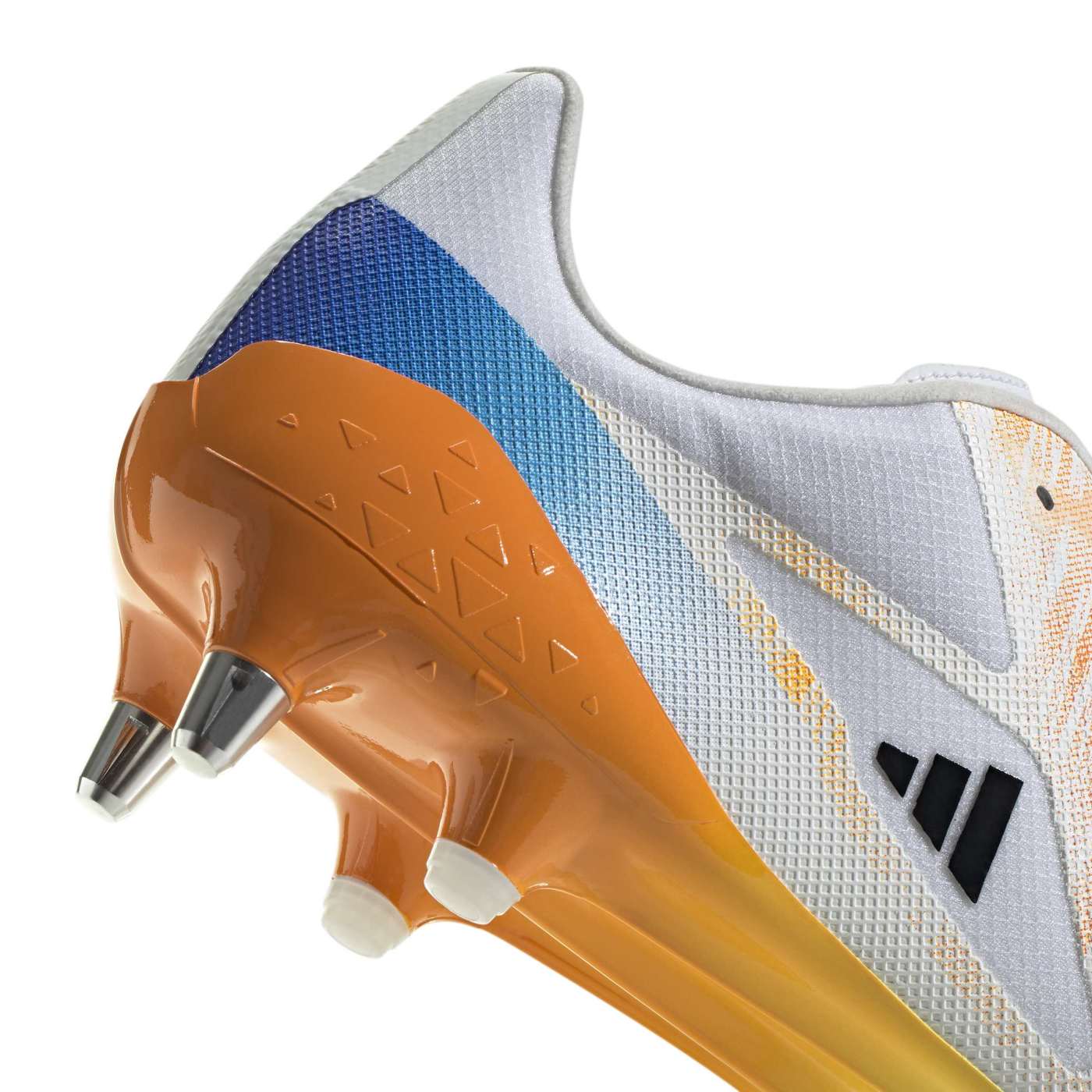 Sous la chaussure, la semelle extérieure Speedframe est spécialement conçue pour le terrain gras. Sa structure légère et réactive favorise des appuis explosifs et une accélération nette, idéale pour les courses multidirectionnelles et les duels en pleine vitesse. Les crampons hybrides assurent une accroche optimale, même lors de rotations rapides ou sur sols détrempés.
