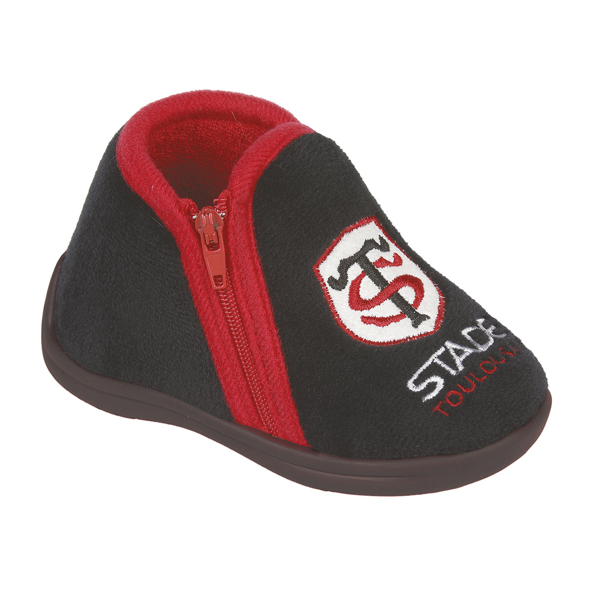 Ces chaussons pour bébé et enfant sont conçus pour offrir un confort optimal aux petits supporters du Stade Toulousain. Avec leur intérieur rouge et leur fermeture éclair latérale rouge, ils sont faciles à enfiler et garantissent une sensation de douceur à chaque pas. La broderie du logo ST et l’inscription « Stade Toulousain » sur le dessus en font un accessoire indispensable pour les jeunes fans du club.