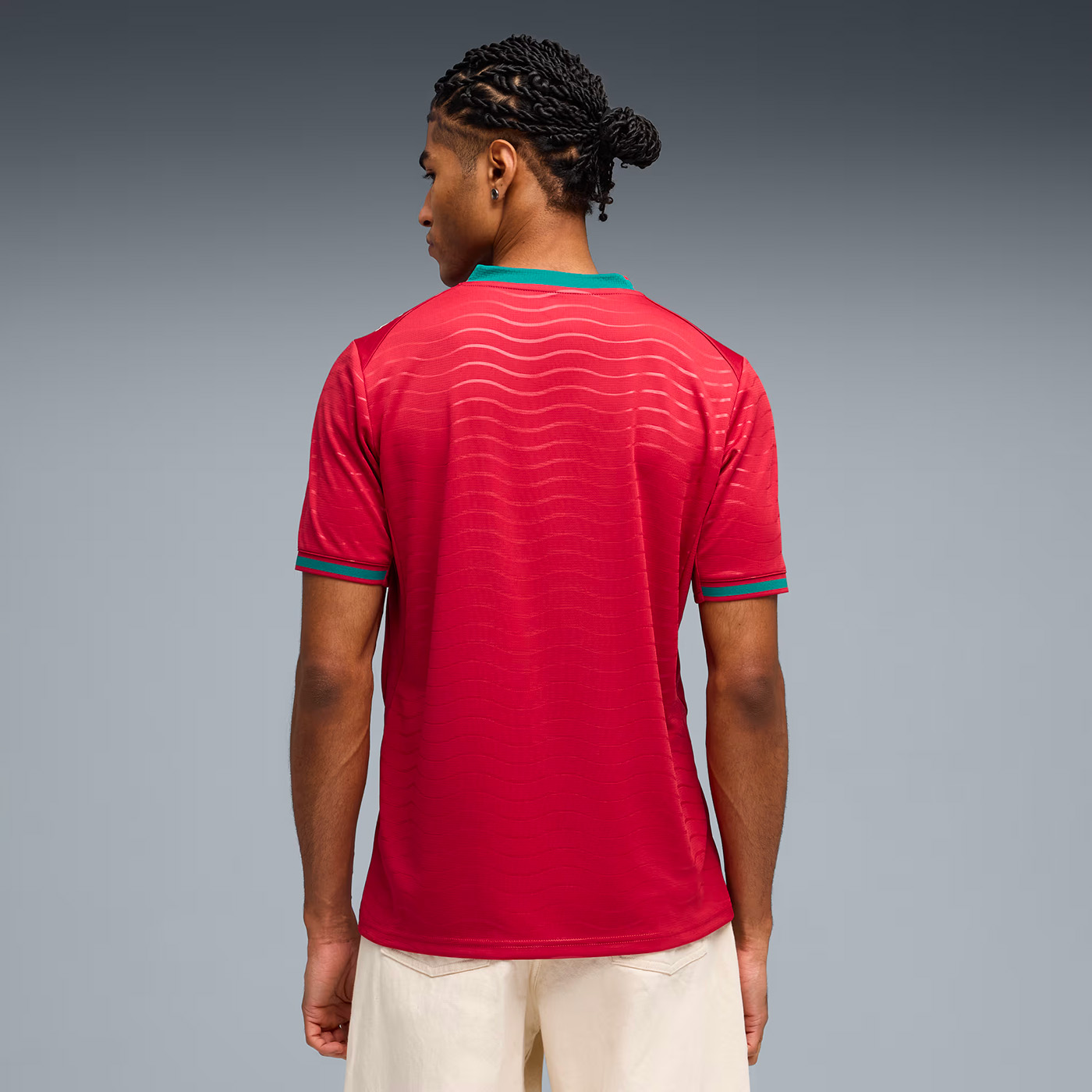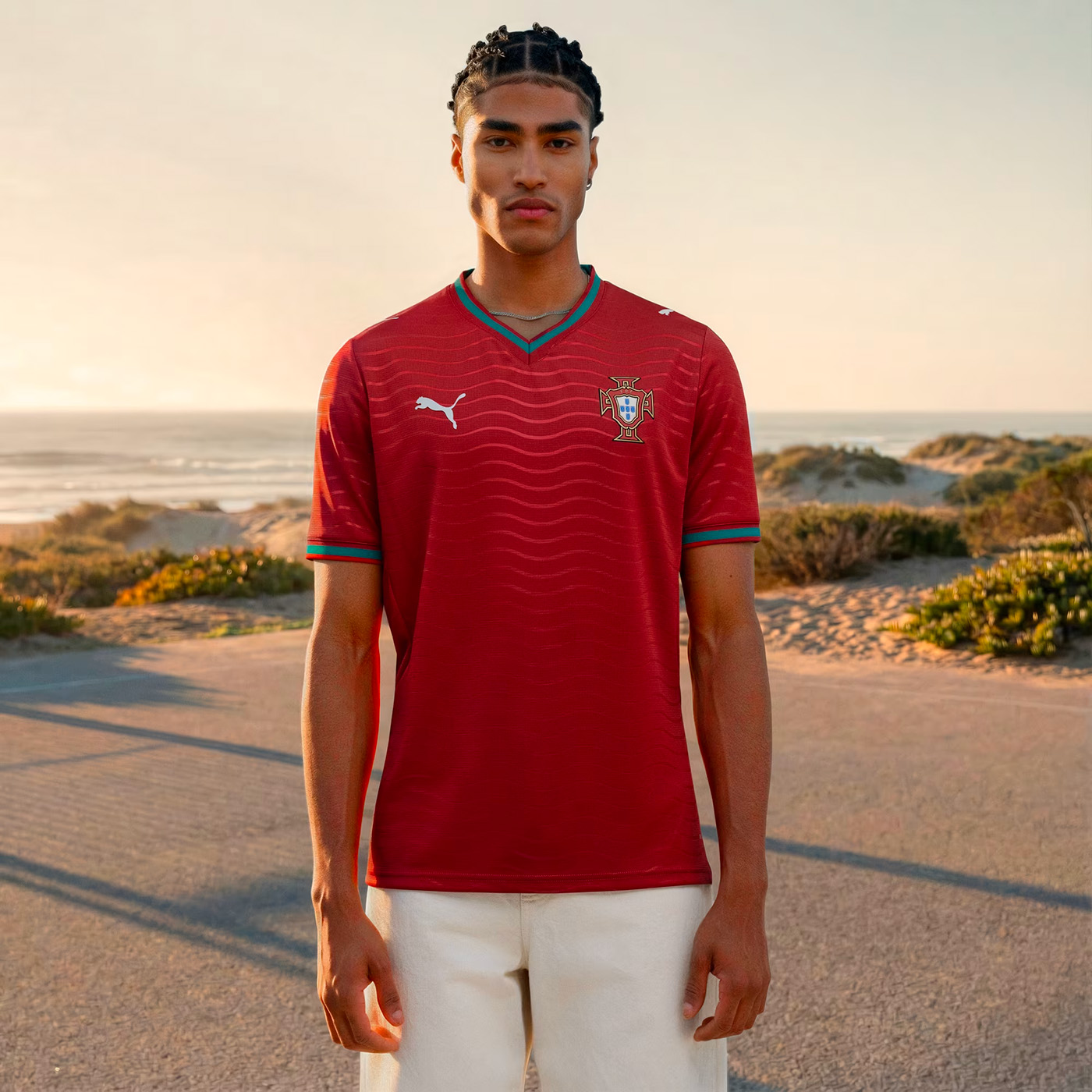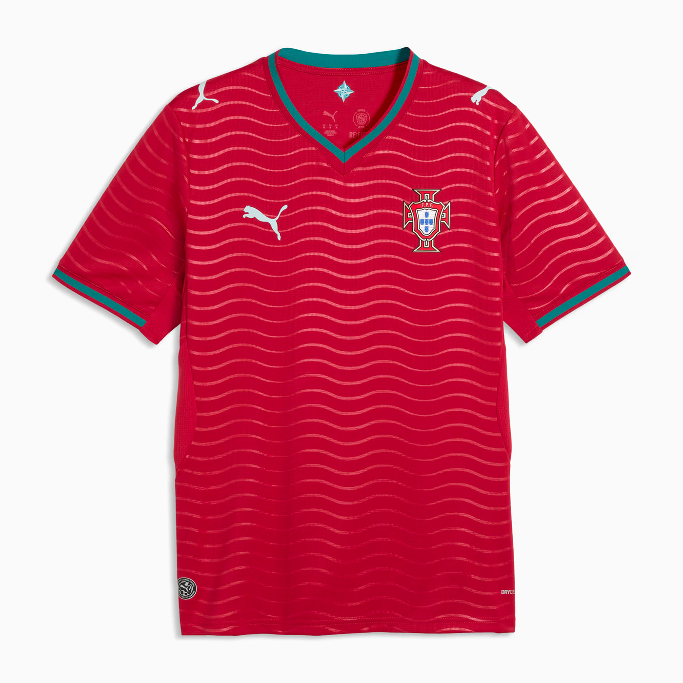 Ce maillot est doté d’une coupe régulière, d’un col en V, et de panneaux en maille pour une ventilation optimale. Les logos du Portugal et de Puma sont fièrement affichés sur la poitrine, symbolisant l’union entre le pays et la marque.