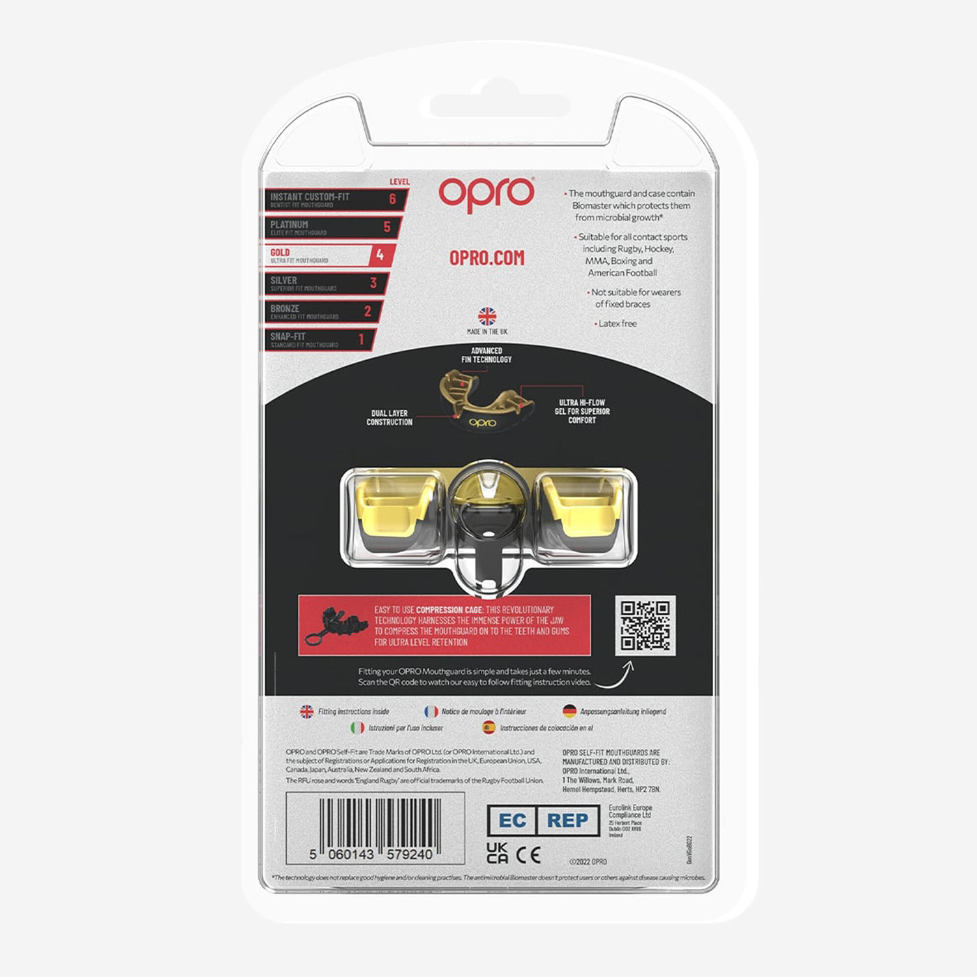 Le protège-dents Opro Gold Gen 5 est conçu pour offrir une protection optimale des dents et des mâchoires pendant le sport. Sa construction en double couche en mousse EVA absorbe les chocs et réduit les risques de blessures liées aux impacts.