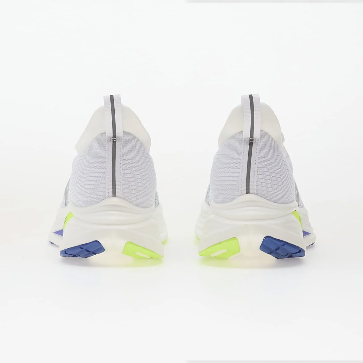 La tige associe des matériaux textiles respirants et des renforts synthétiques afin d’assurer un bon maintien du pied tout en favorisant la circulation de l’air. Cette conception permet de conserver une sensation de fraîcheur et de confort, même lors des efforts prolongés. La structure légère de la chaussure contribue à une expérience de course naturelle, sans contrainte excessive.