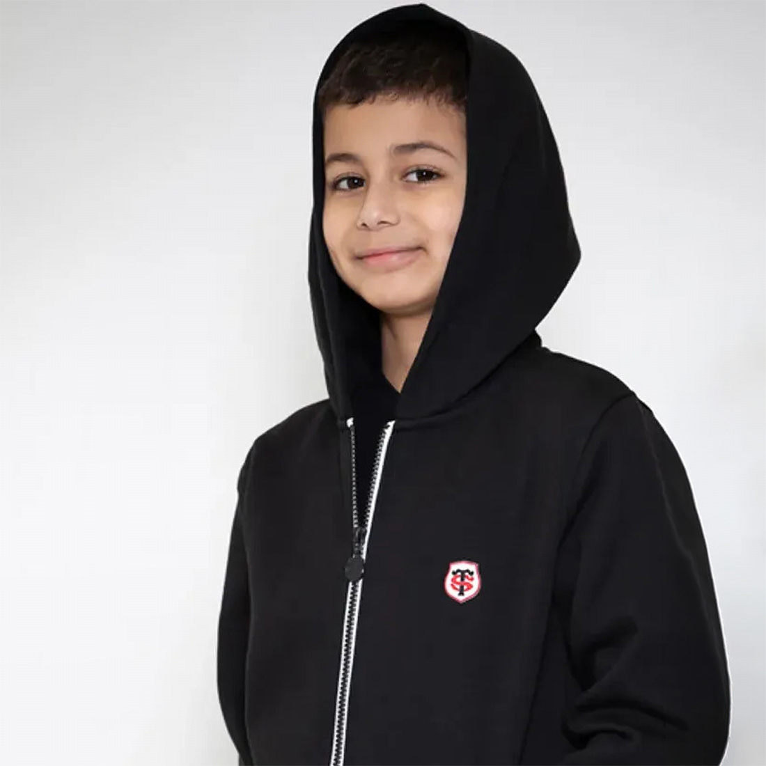 Découvrez la veste à capuche Jamo Stade Toulousain pour enfant, un sweat zippé officiel issu de la collection Printemps Été 2026 du Stade Toulousain Rugby. Fabriqué au Bangladesh, ce hoodie enfant allie confort, style et durabilité pour les petits supporters du Stade Toulousain.