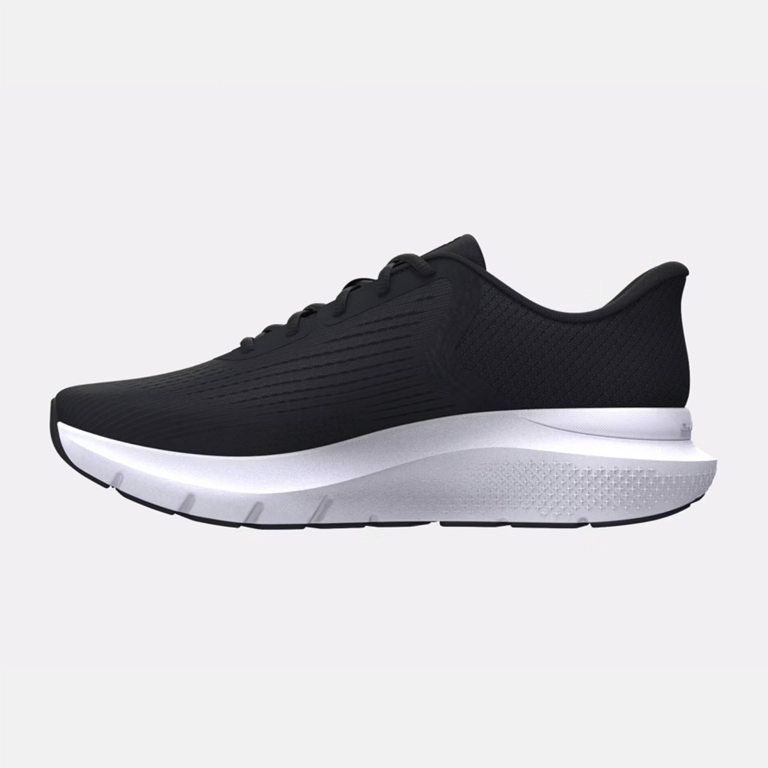 Le mesh technique qui compose l’empeigne sur toute la longueur apporte une respirabilité exceptionnelle tout en maintenant une sensation proche du pied. Cette conception permet une ventilation optimale pendant l’effort tout en garantissant un maintien précis.
